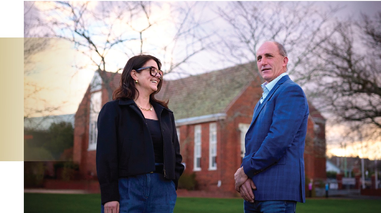 Richard brings the perspective of a proud rural family with deep intergenerational ties to the College — as a former boarder, a Collegian, and a father to four children who have and continue to share in the journey. Emily, equally connected, represents a family whose support of and belief in the College spans decades. A current parent and proud Collegian, Emily carries forward a legacy shaped by community involvement and a love of learning.