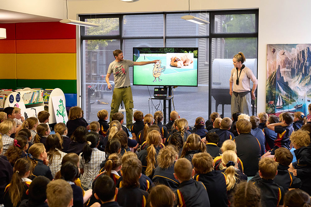 We also had the pleasure of hosting Jol and Kate Temple, who entertained Prep through to Year 5 students with their hilarious stories featuring bin chickens, frogs, birds with arms, mega-rich guinea pigs, and gigantic underpants! Laughter filled the room as students were encouraged to dive into these fantastic books, promoting a love of reading and creative writing.