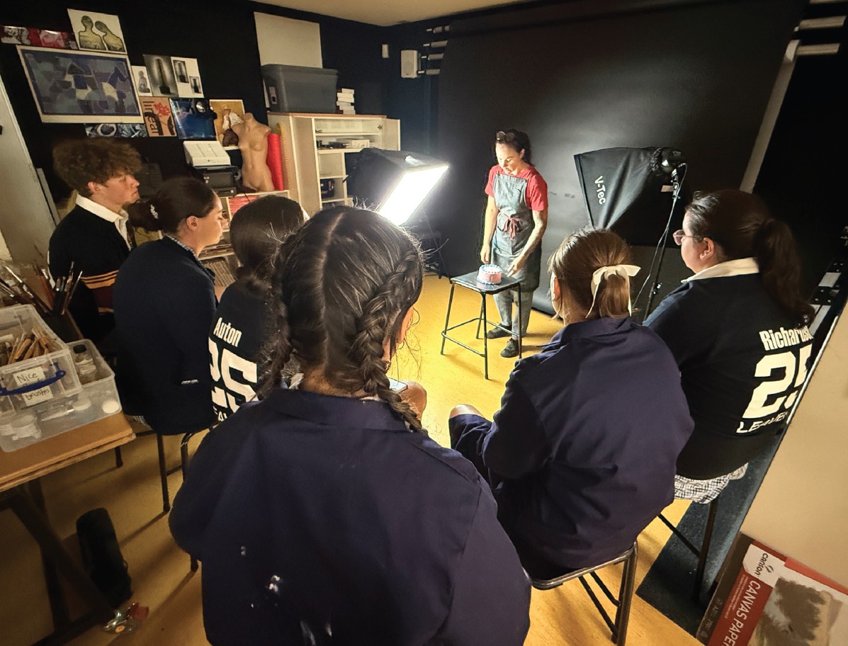 A key focus of Katie’s residency was demystifying the early stages of art making, particularly the use of lighting and photographic references, essential steps in the creative process. “I had the chance to walk students through everything. From lighting the scene and capturing a strong image to using that photo as the base for a painting,” she said. Students applied these lessons directly to their own works, developing critical skills to assist in their TCE Visual Art folio development.