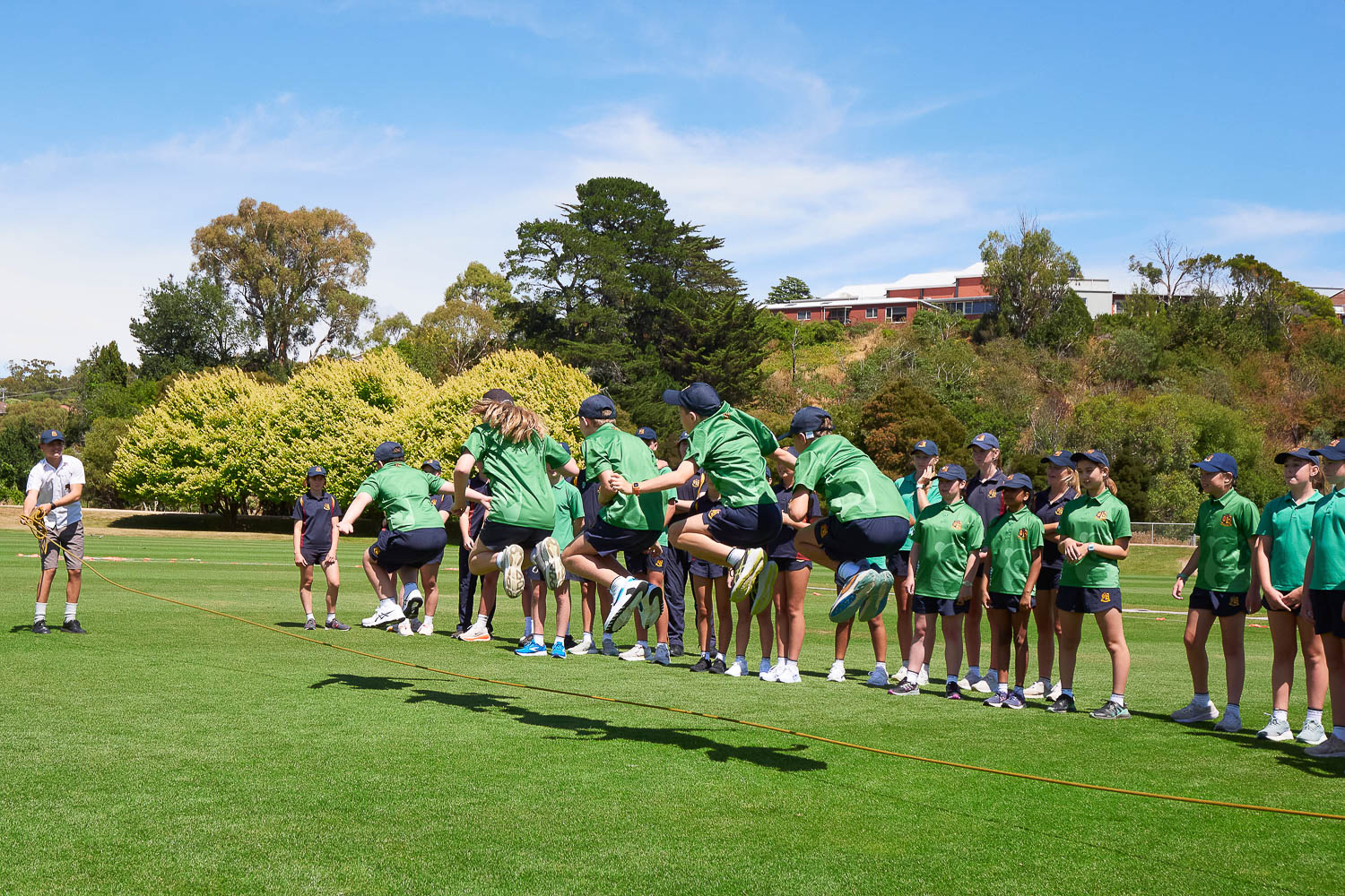The day began with a presentation from the Head of Education Outdoors, Mr Jono Sullivan, who spoke about the key mindsets, skills, and behaviours expected of student leaders. Students then moved to the oval to participate in a series of teamwork activities. Their challenge was not only to complete each task, but also to learn how to facilitate it, as they would later be leading the same activities for the Year 6 students.