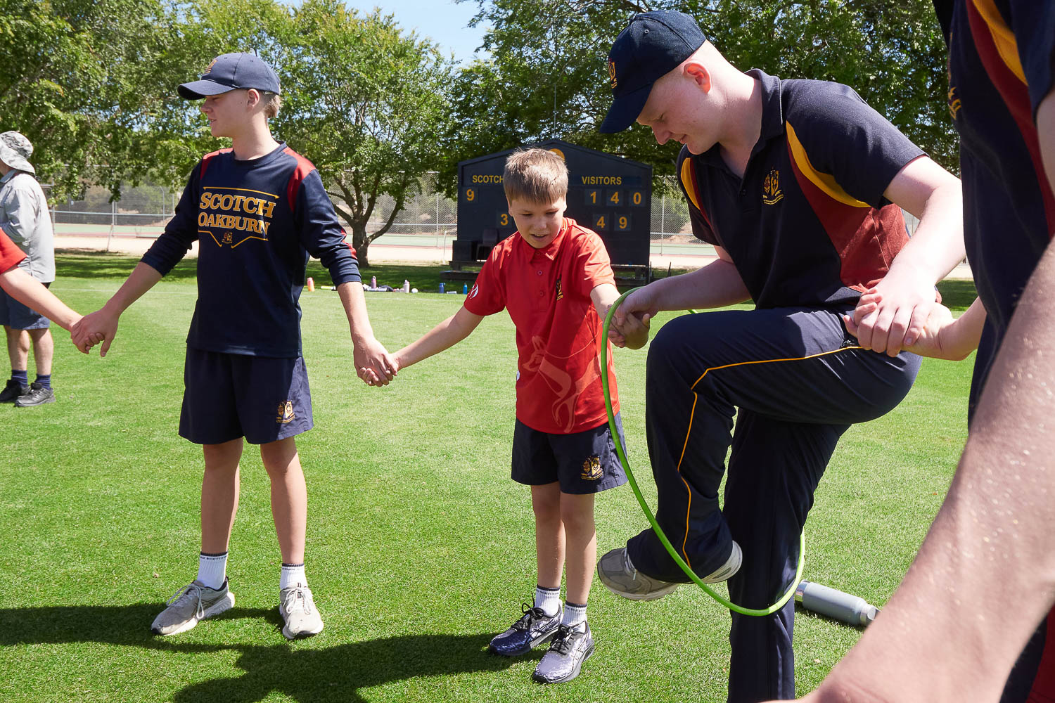 After recess, the Year 10 and Year 6 groups met at Scotch Oakburn Park, where the older students took on the responsibility of guiding the younger students through the activities.
